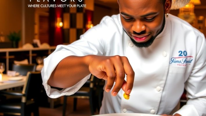 Fusion Flavors is an innovative restaurant that celebrates the diversity of Black culinary traditions by blending African, Caribbean, and North American influences into contemporary dishes. Executive Chef Kwame Asante creates unique flavor combinations that tell stories of migration, adaptation, and cultural celebration.